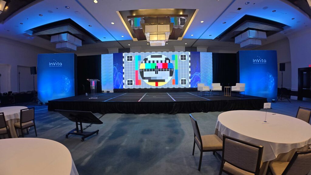 We began providing video walls for trade shows. However, many of our clients asked about using them for conferences. Naturally, we began to offer that as a service. Plus, we still have high powered projectors.